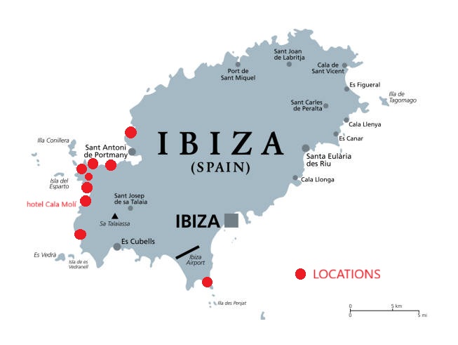 The pick up times at the Eivissia airport will be scheduled in regards to the arrivals of the participants. Distance airport - hotel is 25min.